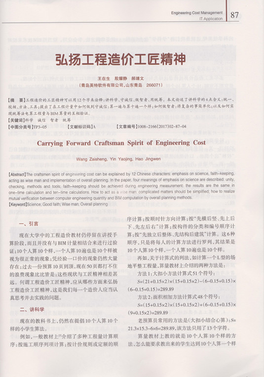 “上世紀70年代,國內造價界發生了兩件大事,一是推廣統籌法計算工程量;二是應用電子計算機算量。兩者結合在一起經過了30多年的發展,現稱為‘統籌e算’,將是國內算量的發展趨勢。”
